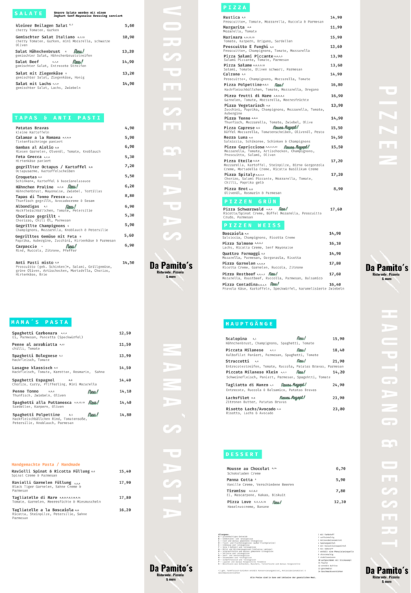 Speiskarte Restaurant da Pamito´s